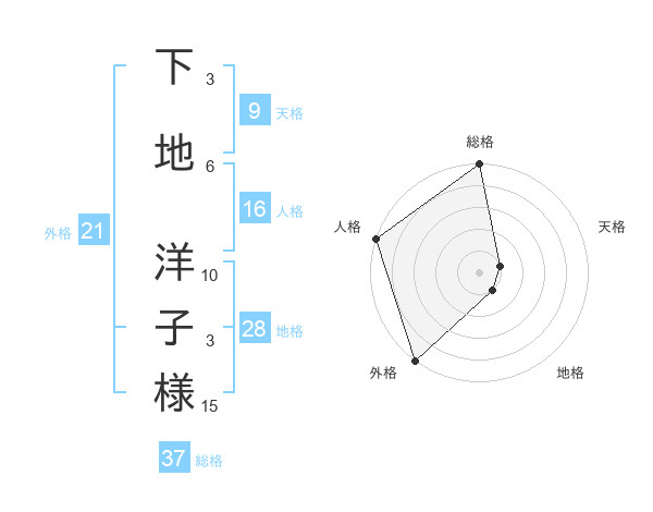 下地 洋子様さんを姓名の画数から五運を鑑定