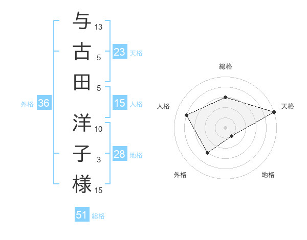与古田 洋子様さんを姓名の画数から五運を鑑定