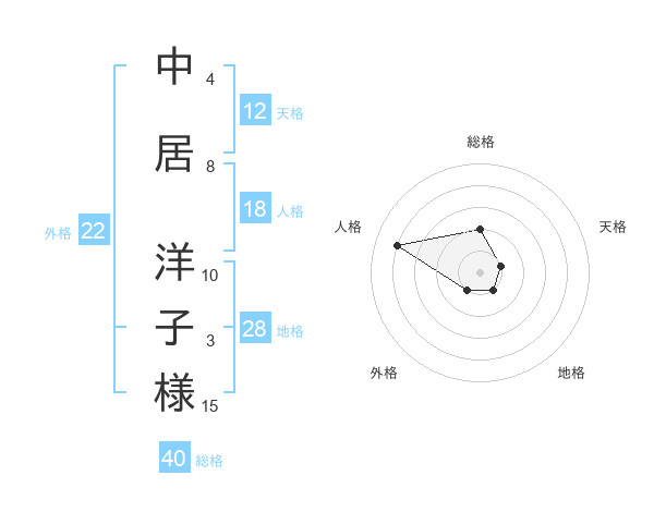 中居 洋子様さんの総格は40画の2点!