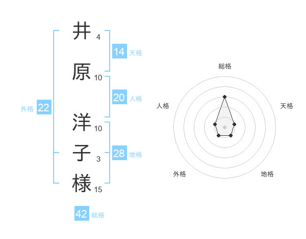 井原 洋子様さんの総格は42画の3点!