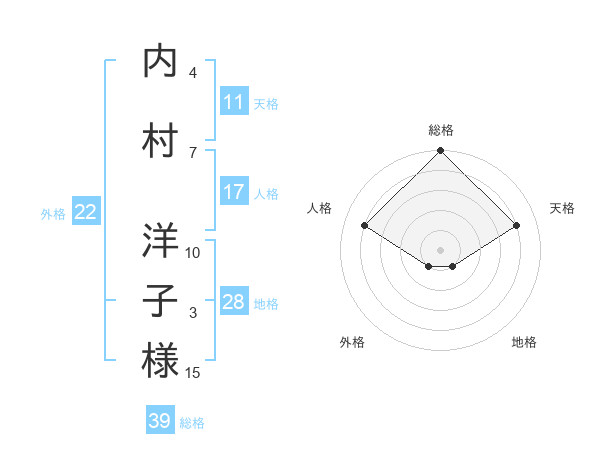 内村 洋子様さんを姓名の画数から五運を鑑定