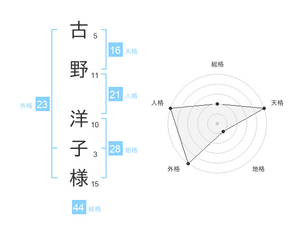 古野 洋子様さんを姓名の画数から五運を鑑定