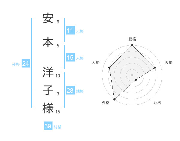 安本 洋子様さんを姓名の画数から五運を鑑定