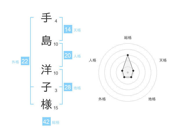 手島 洋子様さんを姓名の画数から五運を鑑定