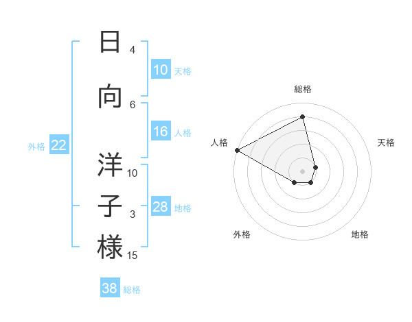 日向 洋子様さんの総格は38画の4点!