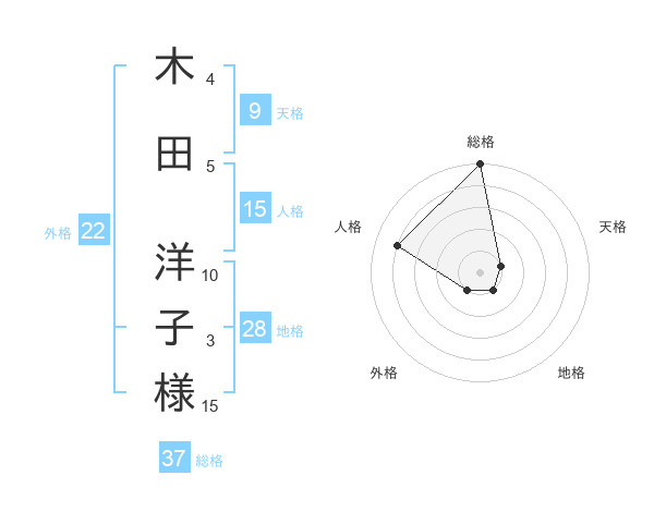 木田 洋子様さんを姓名の画数から五運を鑑定
