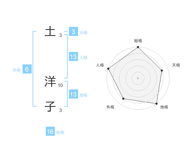 土 洋子さんの総格は16画の5点!