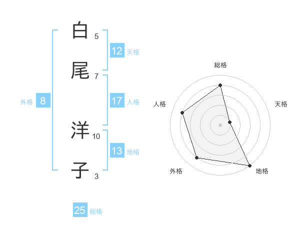 白尾 洋子さんの天格は12画の1点!