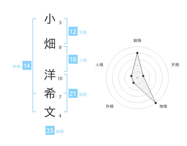 小畑 洋希文さんを姓名の画数から五運を鑑定