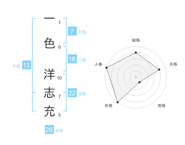 一色 洋志充さんを姓名の画数から五運を鑑定