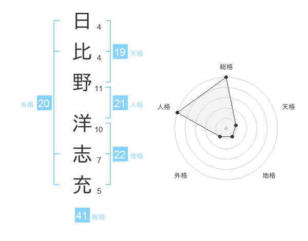 日比野 洋志充さんを姓名の画数から五運を鑑定