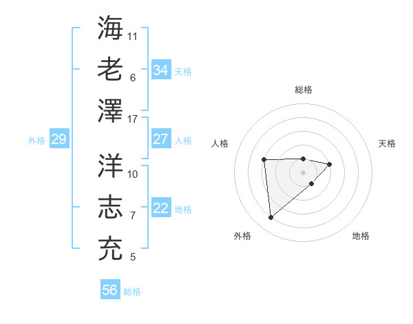 海老澤 洋志充さんを姓名の画数から五運を鑑定