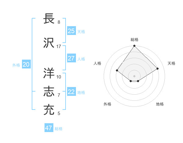長沢 洋志充さんを姓名の画数から五運を鑑定