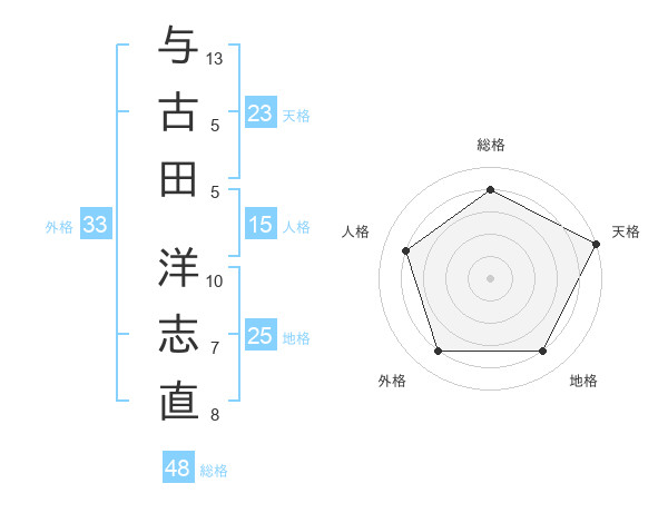 与古田 洋志直さんを姓名の画数から五運を鑑定