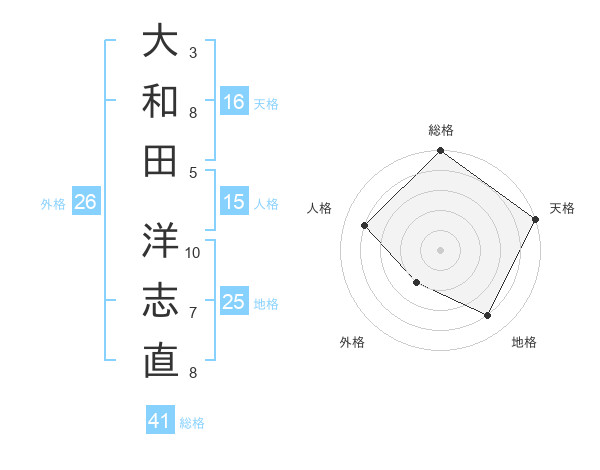 大和田 洋志直さんの総格は41画の5点!
