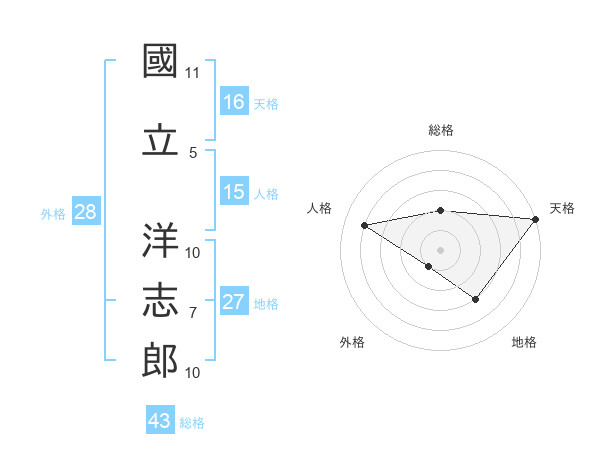 國立 洋志郎さんを姓名の画数から五運を鑑定