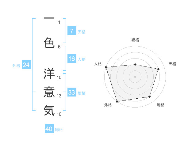 一色 洋意気さんを姓名の画数から五運を鑑定