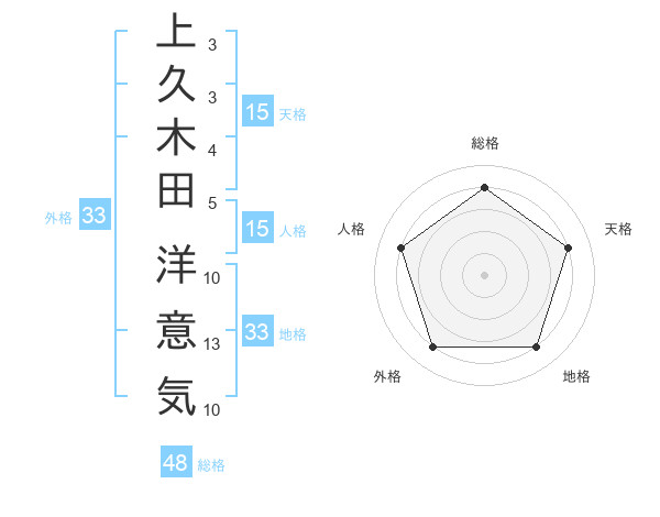 上久木田 洋意気さんを姓名の画数から五運を鑑定