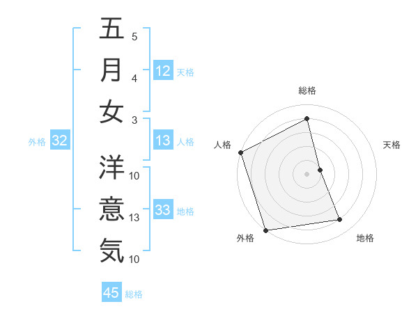 五月女 洋意気さんを姓名の画数から五運を鑑定