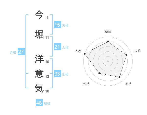 今堀 洋意気さんを姓名の画数から五運を鑑定