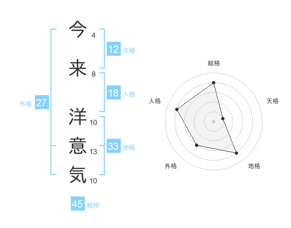 今来 洋意気さんの総格は45画の4点!