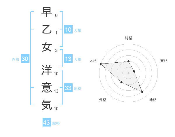 早乙女 洋意気さんの総格は43画の2点