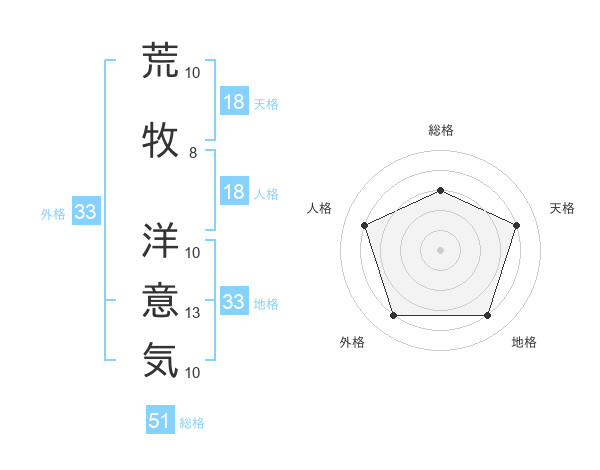 荒牧 洋意気さんを姓名の画数から五運を鑑定