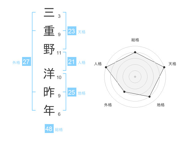 三重野 洋昨年さんを姓名の画数から五運を鑑定