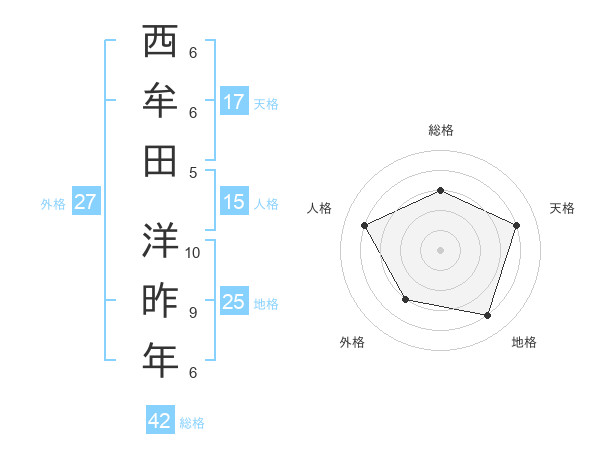 西牟田 洋昨年さんを姓名の画数から五運を鑑定