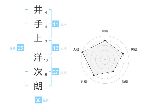 井手上 洋次朗さんを姓名の画数から五運を鑑定