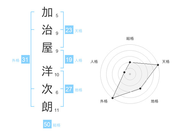 加治屋 洋次朗さんの総格は50画の2点