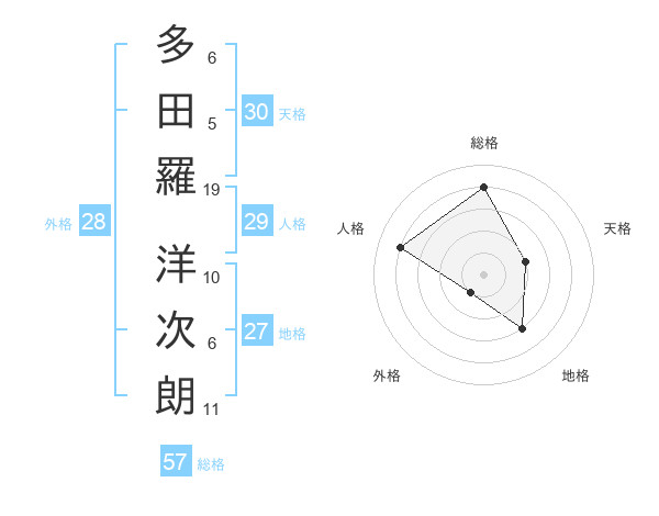 多田羅 洋次朗さんを姓名の画数から五運を鑑定