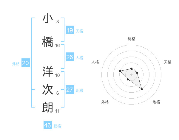 小橋 洋次朗さんを姓名の画数から五運を鑑定