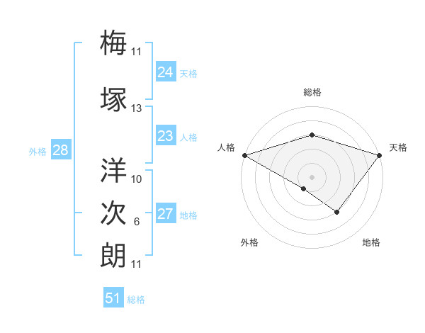 梅塚 洋次朗さんの総格は51画の3点