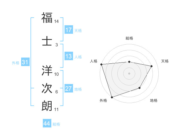 福士 洋次朗さんを姓名の画数から五運を鑑定