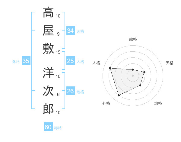 高屋敷 洋次郎さんを姓名の画数から五運を鑑定