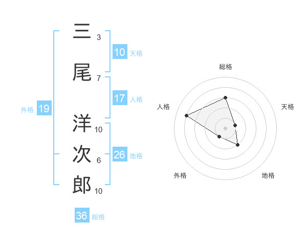 三尾 洋次郎さんを姓名の画数から五運を鑑定