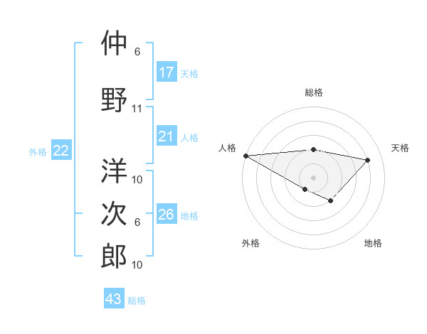 仲野 洋次郎さんを姓名の画数から五運を鑑定