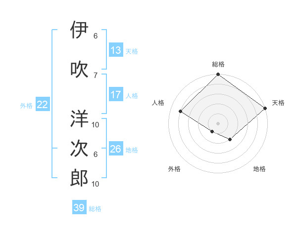 伊吹 洋次郎さんの総格は39画の5点!