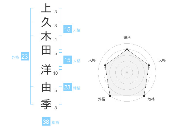 上久木田 洋由季さんを姓名の画数から五運を鑑定