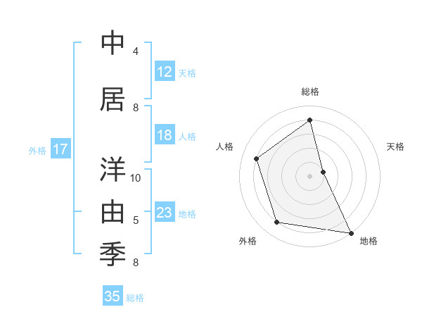 中居 洋由季さんを姓名の画数から五運を鑑定