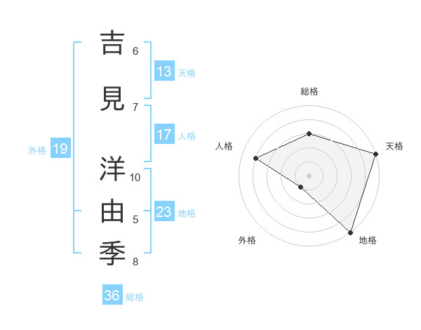 吉見 洋由季さんを姓名の画数から五運を鑑定