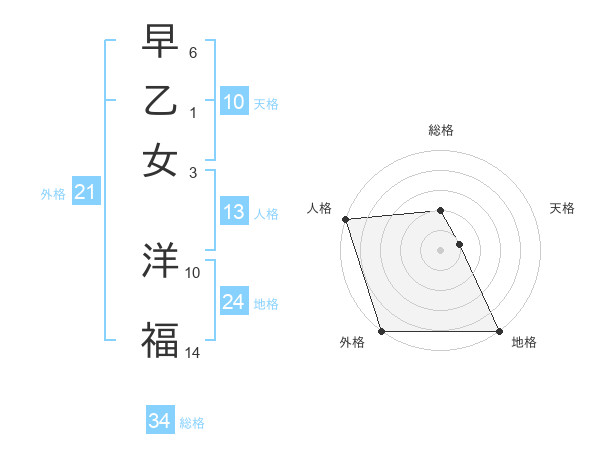 早乙女 洋福さんを姓名の画数から五運を鑑定