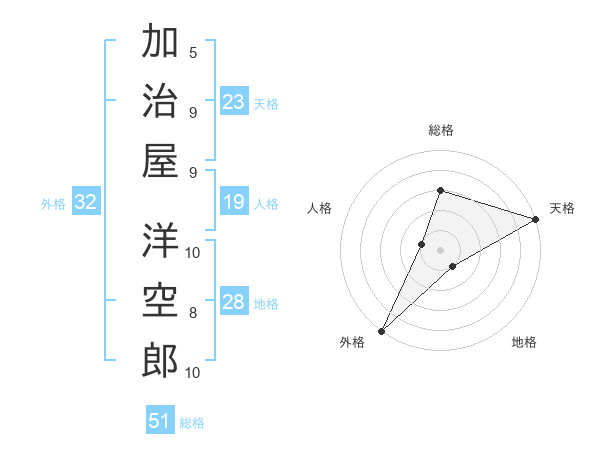 加治屋 洋空郎さんの天格は23画の5点