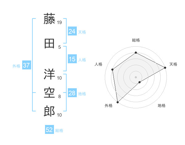 藤田 洋空郎さんの外格は37画の5点
