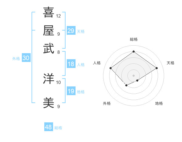 喜屋武 洋美さんの天格は29画の4点!
