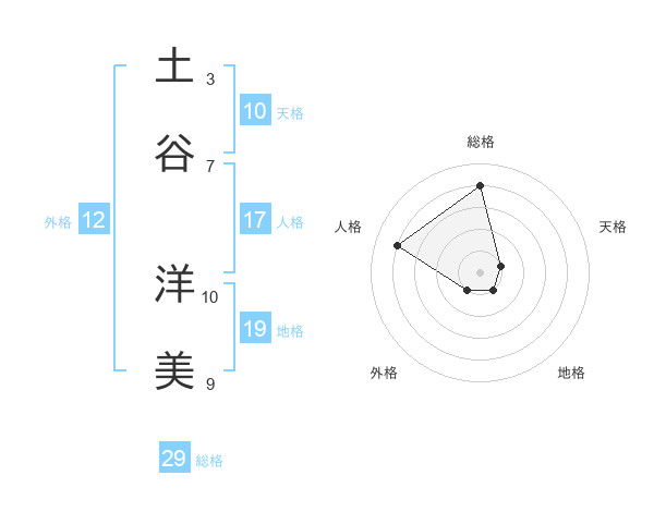 土谷 洋美さんを姓名の画数から五運を鑑定