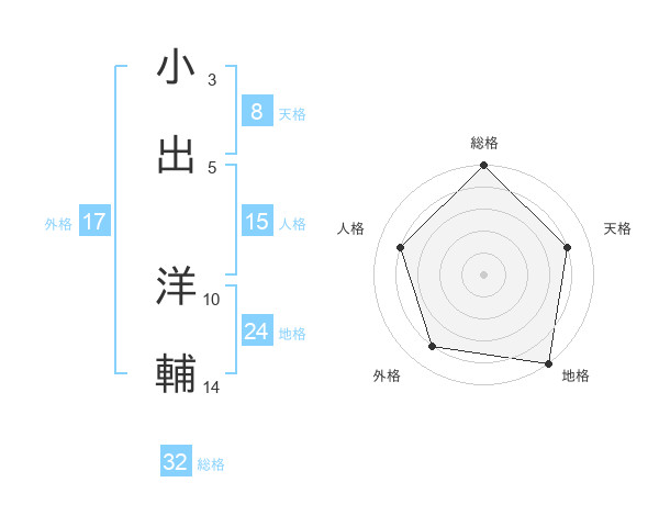小出 洋輔さんの総格は32画の5点!