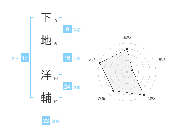 下地 洋輔さんを姓名の画数から五運を鑑定