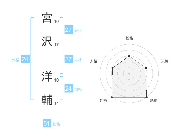 宮沢 洋輔さんを姓名の画数から五運を鑑定